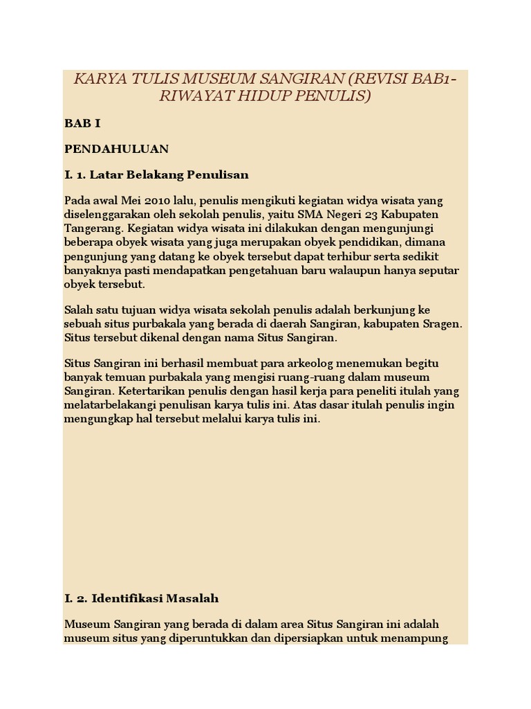 4.docx - 4.Coba buatlah karya ilmiah(2-3 halaman dengan tajuk Sangran Laboratorium Manusia Purba Jawab KARYA TULIS MUSEUM SANGIRAN BAB I PENDAHULUAN I 1 | Course Hero