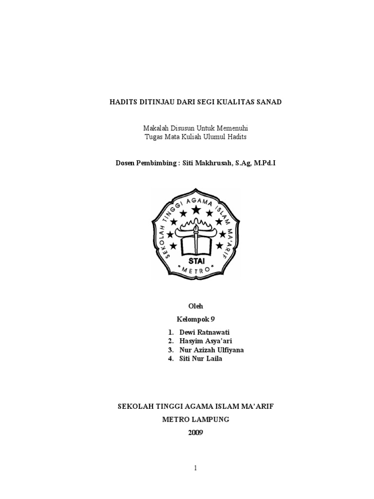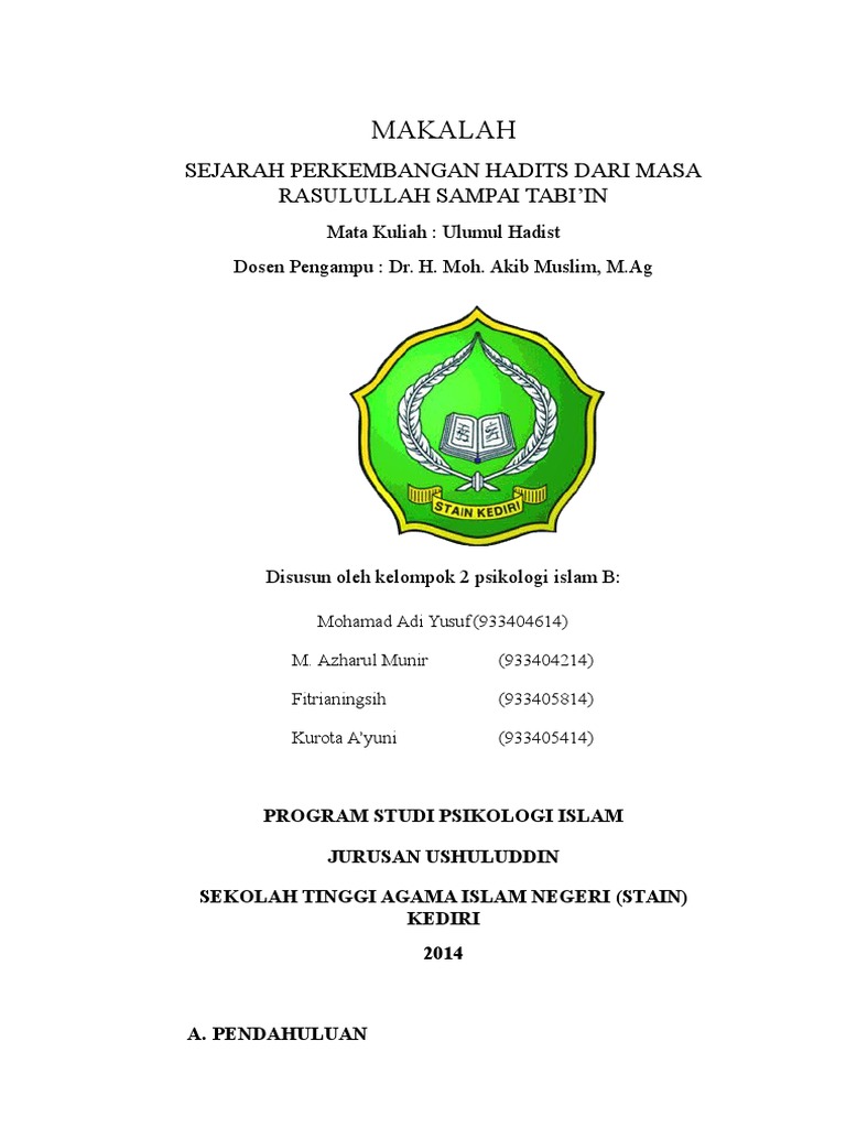 Contoh Cover Makalah Ulumul Hadits - Kumpulan Contoh Makalah Doc Lengkap
