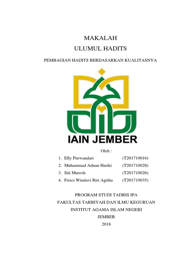 PDF) Makalah pengklasifikasian hadis dari berbagai aspeknya | Rafi Mariska - Academia.edu