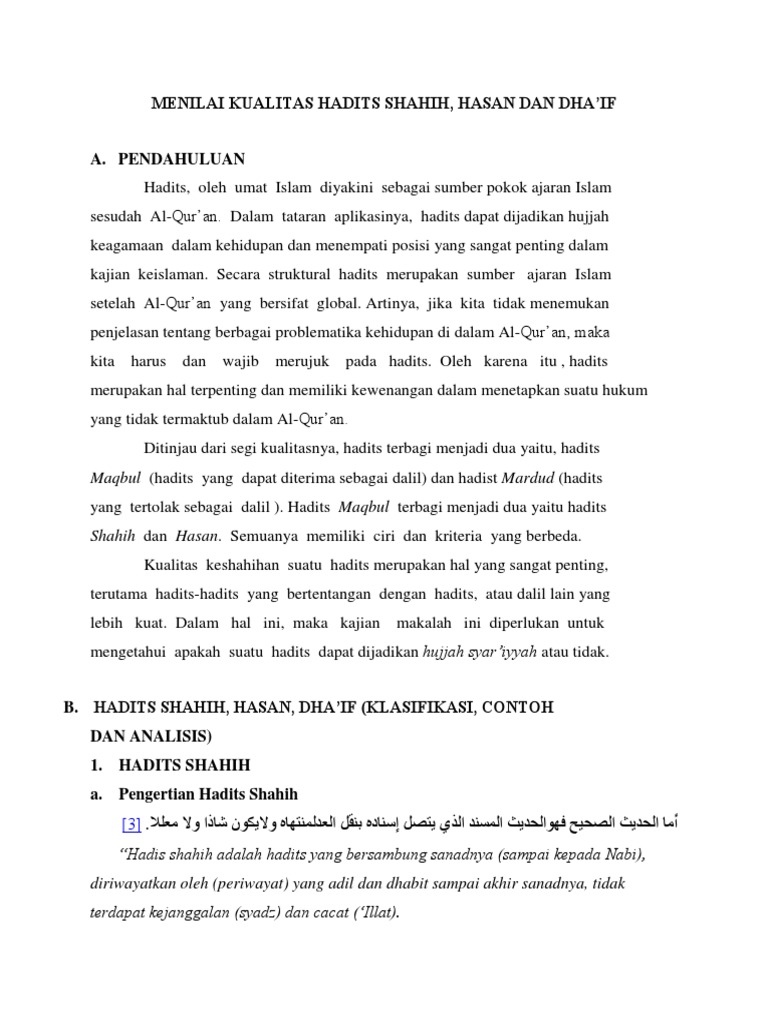 DOC) MAKALAH HADIST SHAHIH.doc | Dzyka Rokhmatun N A - Academia.edu