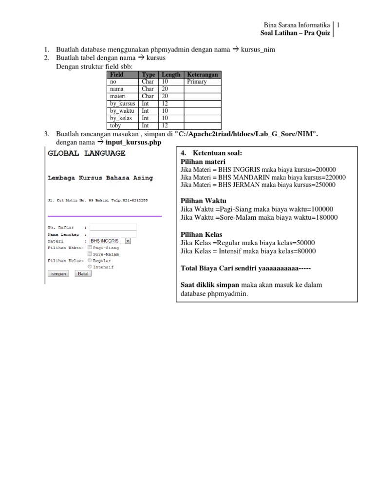 Soal Latihan Web Programing I
