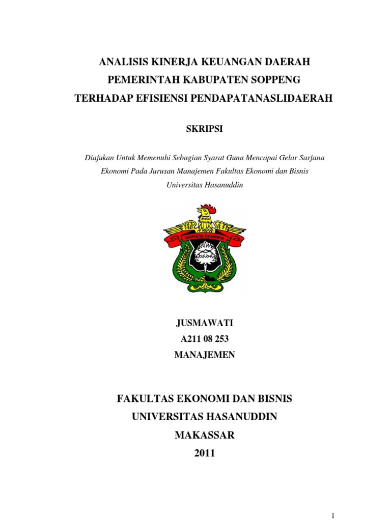 ANALISIS KINERJA KEUANGAN PADA KOPERASI SERBA USAHA BINA USAHA DI KABUPATEN GOWA SKRIPSI NUR HIDAYAH FAKULTAS EKONOMI UNIVERSIT