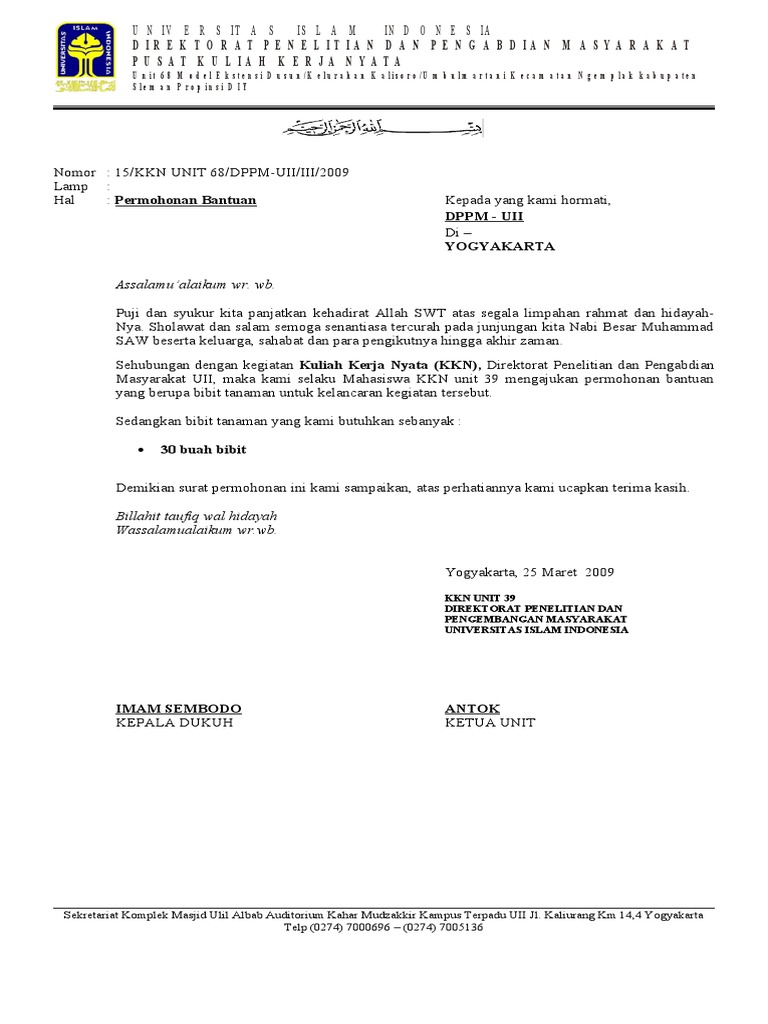 Contoh Surat Permohonan Bantuan