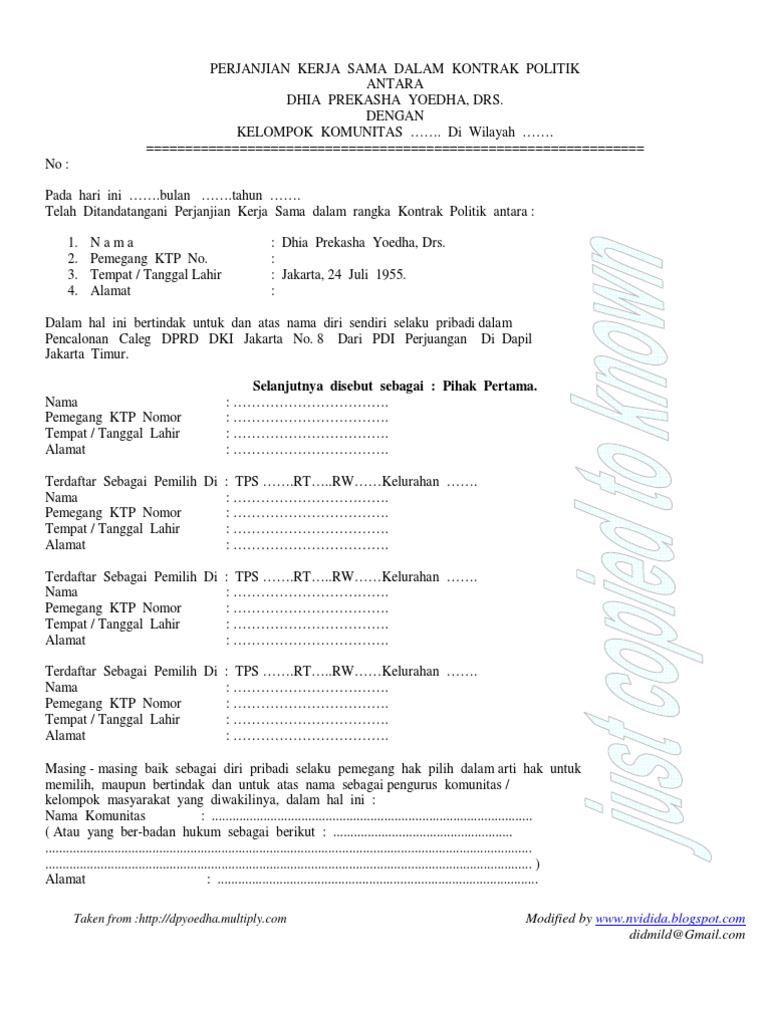 Contoh Naskah Kontrak Politik