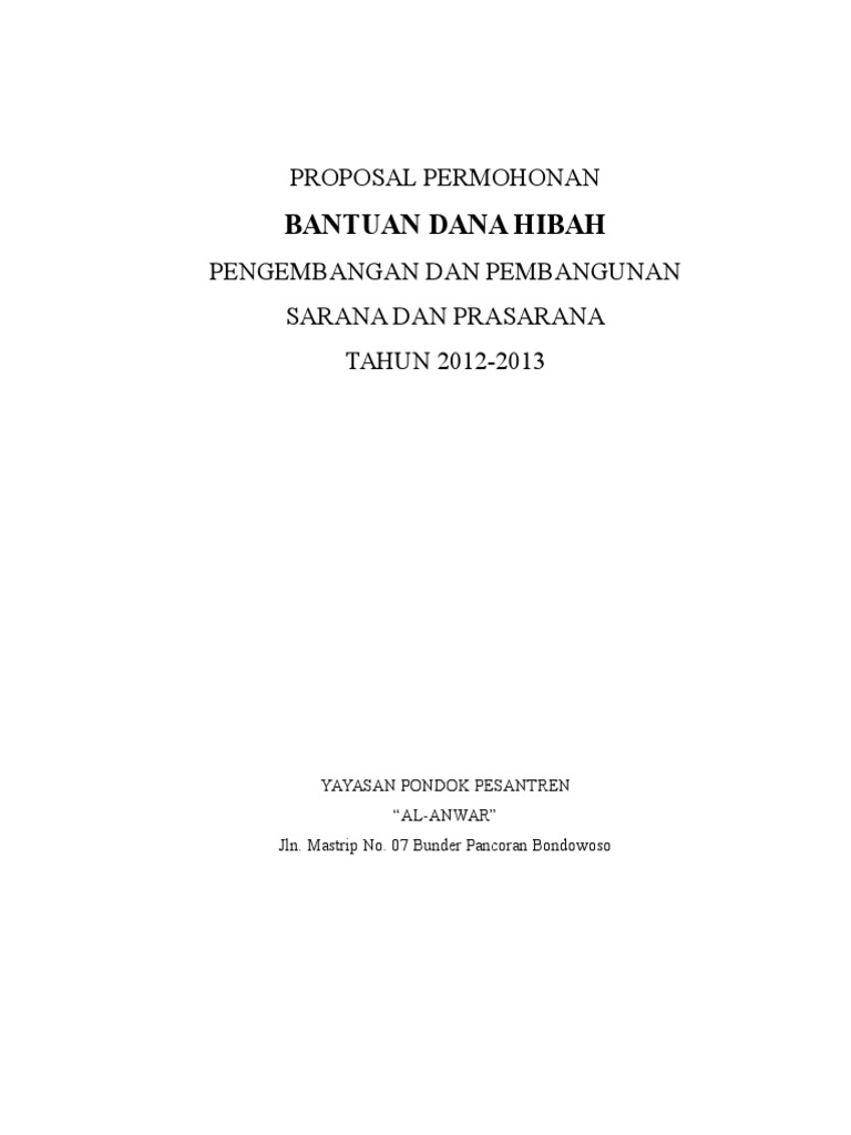 PDF) Contoh Proposal Pengajuan Dana Hibah | Zakir Al-Fatih - Academia.edu