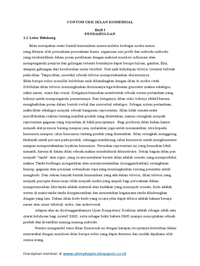 Proposal UKK SMK Jurusan Multimedia Membuat Iklan Komersial Audio Videografivisual Produk Makanan Ringan Daerah | Blognya Abiey Kayla
