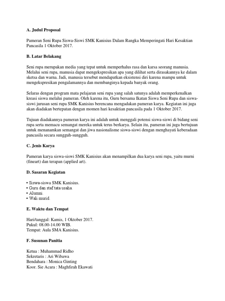 DOC) CONTOH PROPOSAL KEGIATAN PAMERAN SENI RUPA DI SEKOLAH.docx | Zakaria Ahmad - Academia.edu
