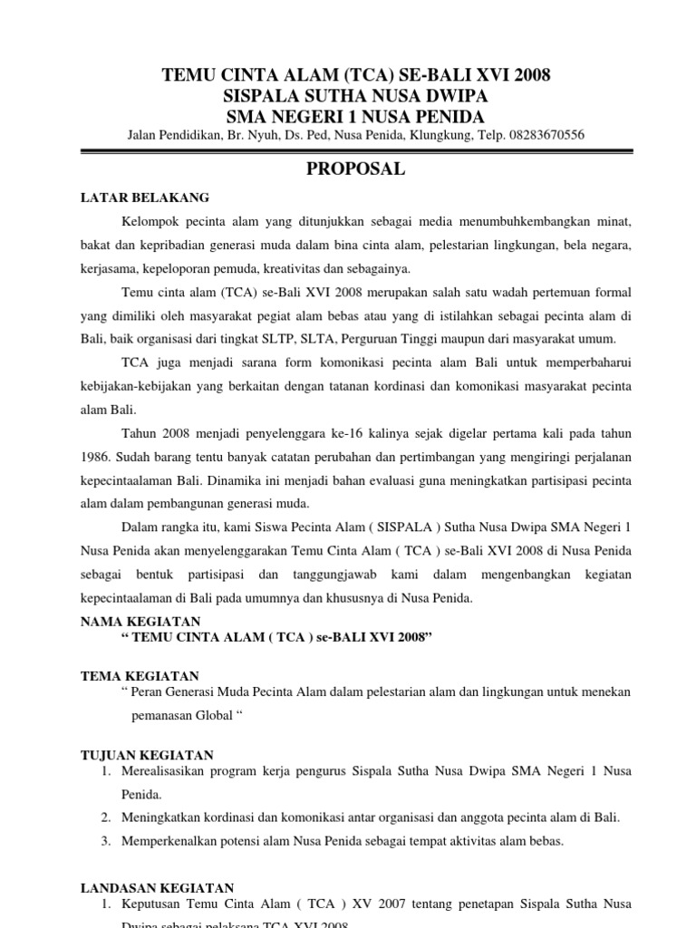 Contoh Proposal Pecinta Alam