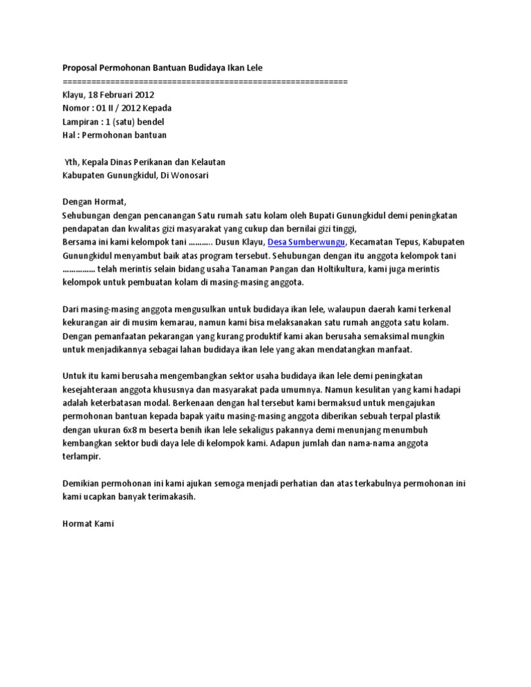 Contoh Proposal Bantuan Bibit Ikan Ke Dinas Perikanan Pdf