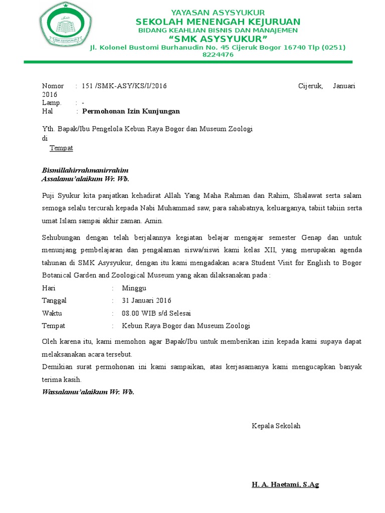 Surat Permohonan kunjungan