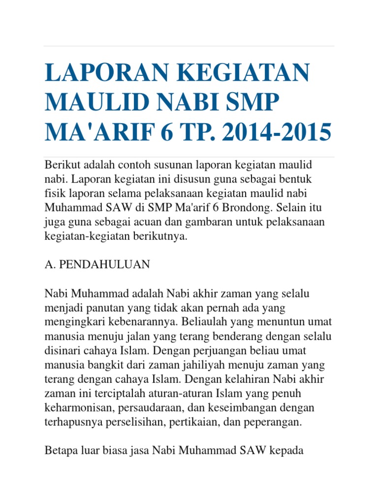 Contoh Laporan Kegiatan Maulid Nabi Di Sekolah Dasar - Kumpulan Contoh Laporan
