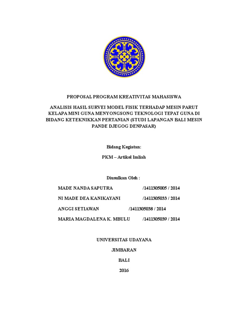 DOC) PROPOSAL PERMOHONAN BANTUAN ALAT DAN MESIN PERTANIAN | untung siwoyo - Academia.edu
