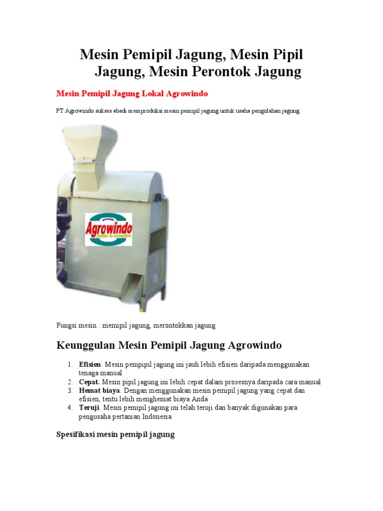 MAKALAH ALAT DAN MESIN PERTANIAN MESIN PEMIPIL JAGUNG DAN ALAT PEMIPIL TRADISIONAL - PDF Free Download