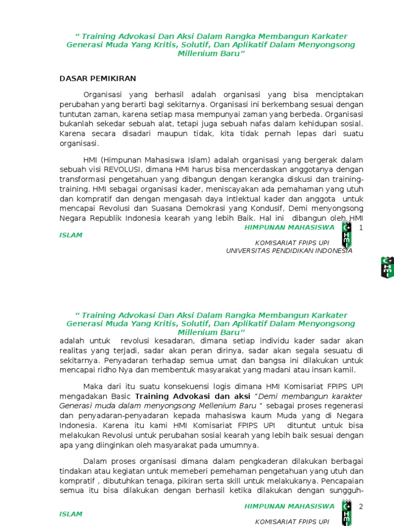 Contoh Proposal Taruna Melati 1 (PKTM 1 IPM) | Ikatan Pelajar Muhammadiyah - BroHabir