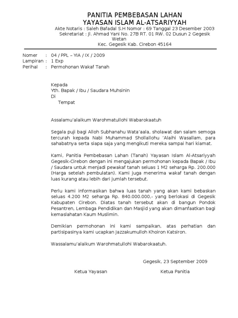 DOC) PROPOSAL WAKAF TANAH UNTUK PEMBEBASAN LAHAN MASJID BAITUSSALAM PERUMAHAN BUMI ELOK SEJAHTERA | Dedek Alfa - Academia.edu