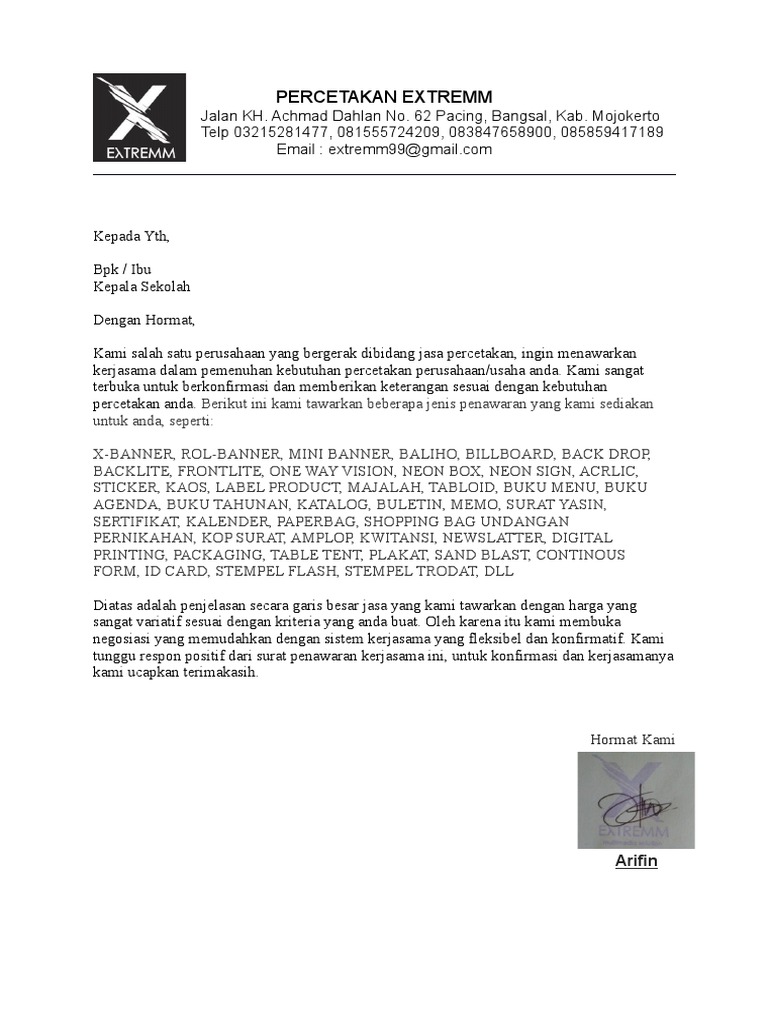 20 Contoh Surat Penawaran Kerja Sama, Barang, Jasa, Produk