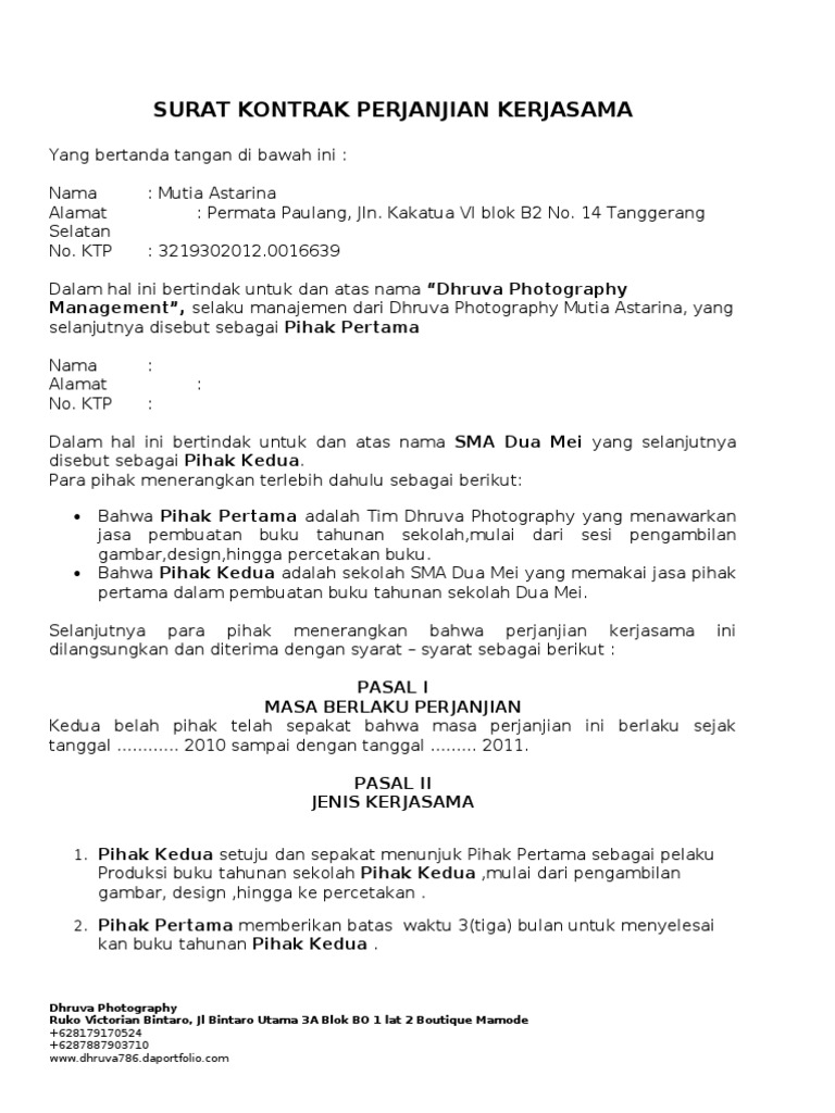 Contoh Surat Perjanjian Kerjasama (MOU) Sekolah dengan Pihak Travel | INFO DIKDAS