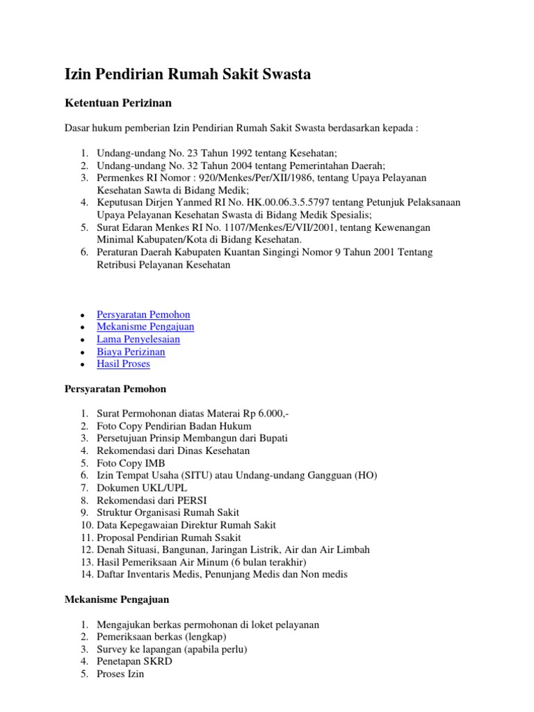 Izin Pendirian Rumah Sakit Swasta