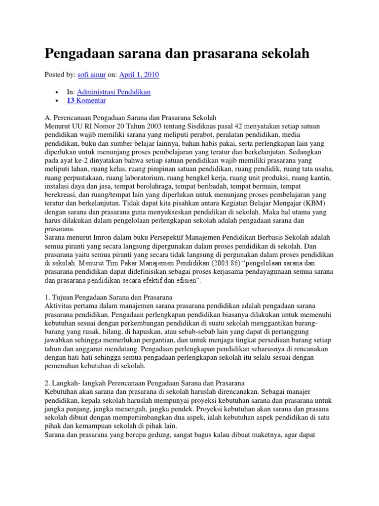 DOC) Contoh proposal Pengaruh Sarana Dan Prasarana Pembelajaran terhadap prestasi belajar siswa | Mariana Tampomalu - Academia.edu