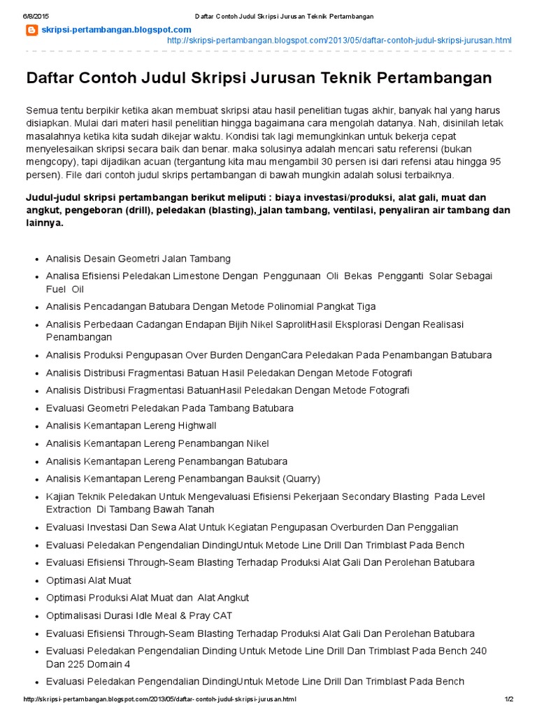 Daftar Contoh Judul Skripsi Jurusan Teknik Pertambangan