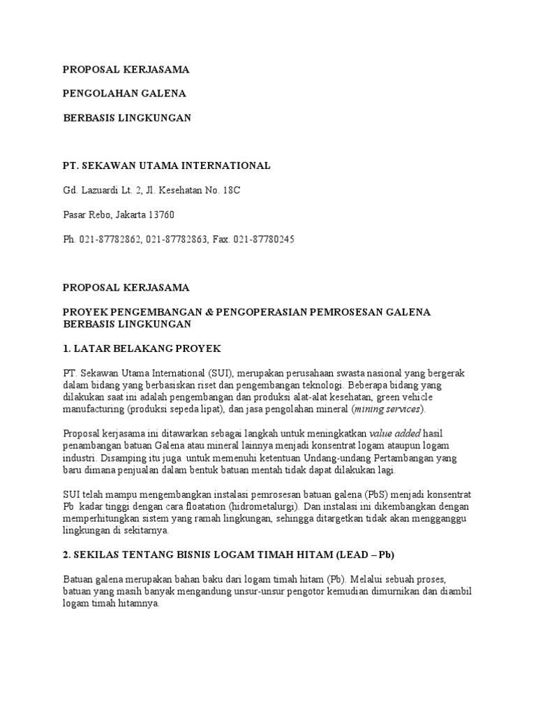 Proposal Kerjasama Pengolahan Galena