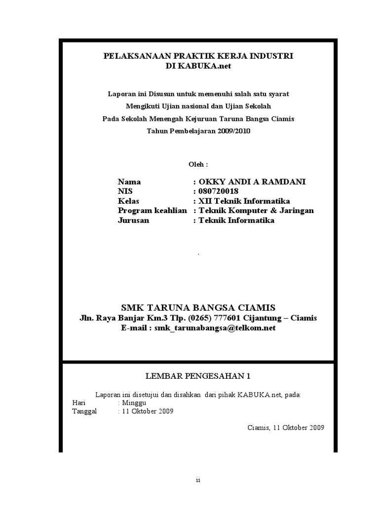 DOC) Contoh laporan prakerin smk tkj | Karim al kholil - Academia.edu