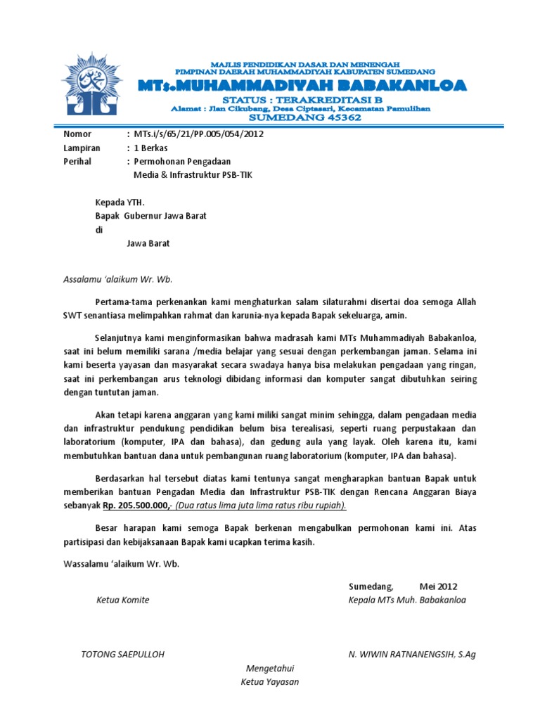 Contoh Surat Permohonan Bantuan Untuk Sekolah
