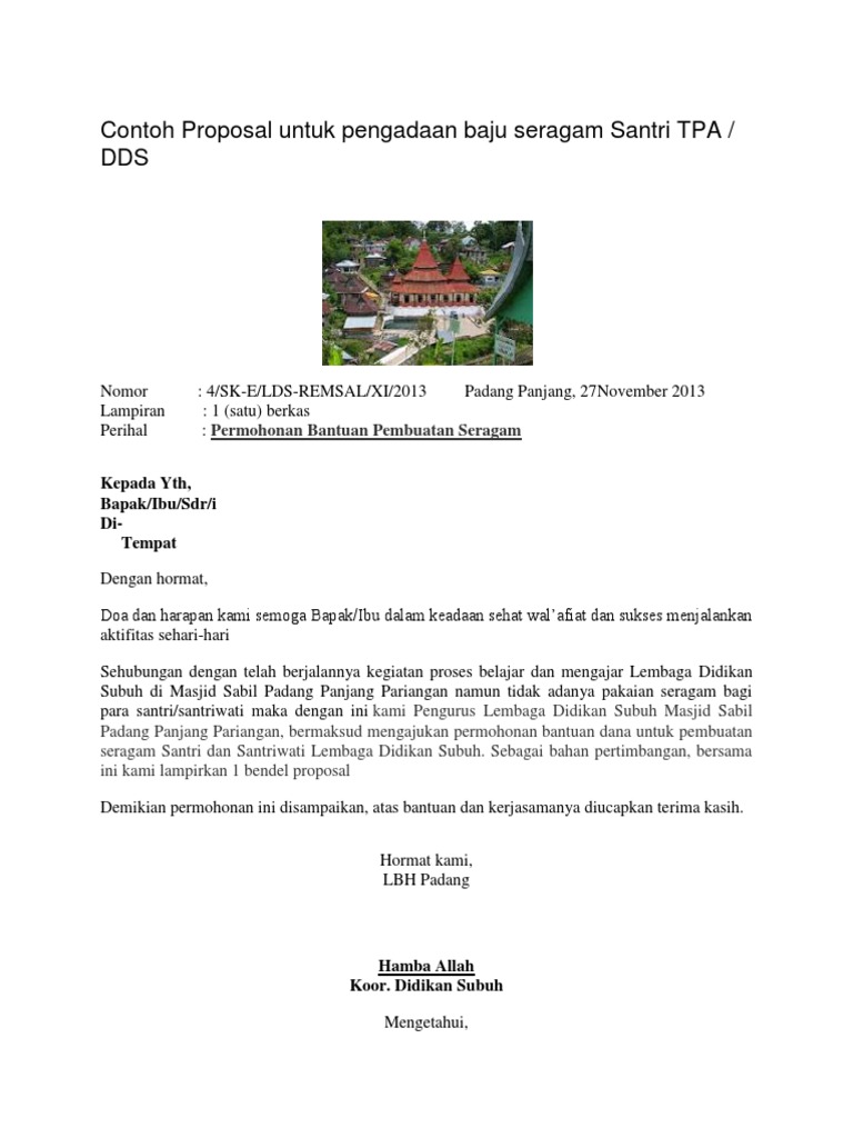 Contoh Proposal Untuk Pengadaan Baju Seragam Santri TPA