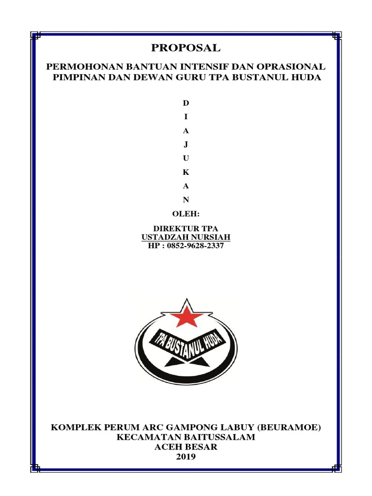 Contoh Proposal Permohonan Bantuan Dana untuk Balai Pengajian.docx - Contoh Proposal Permohonan Bantuan Dana untuk Balai Pengajian dayah TPA No | Course Hero