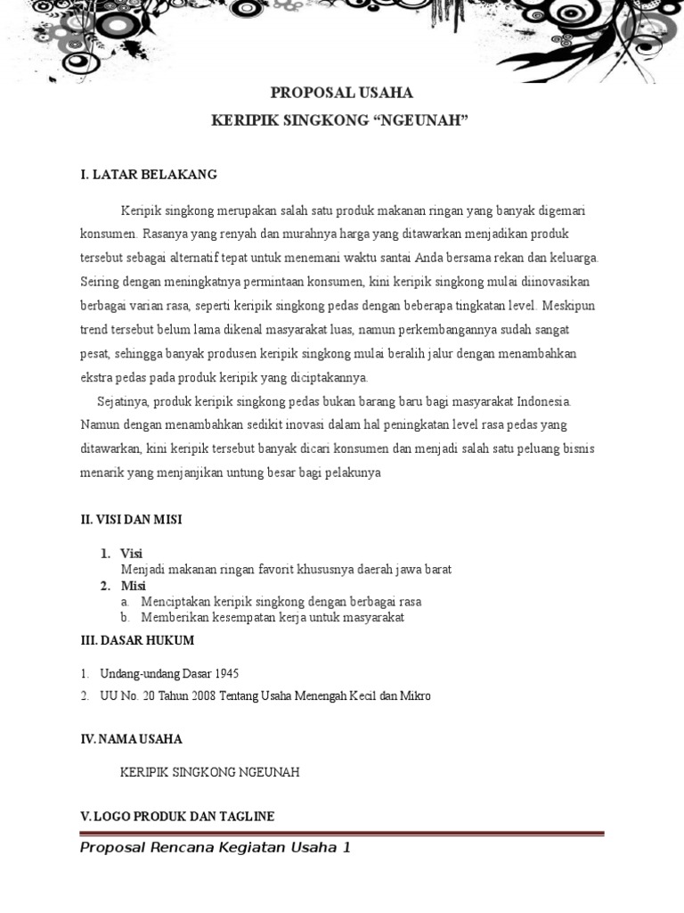 PDF) Proposal Usaha Keripik Ubi Cilembu | Sadam husen - Academia.edu