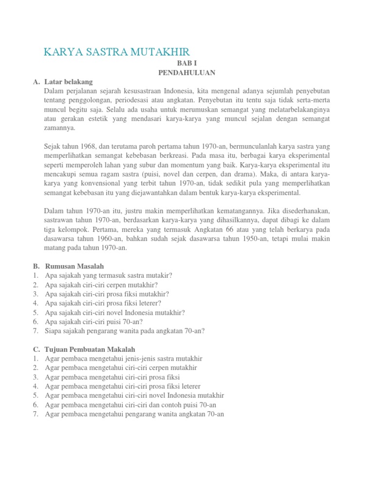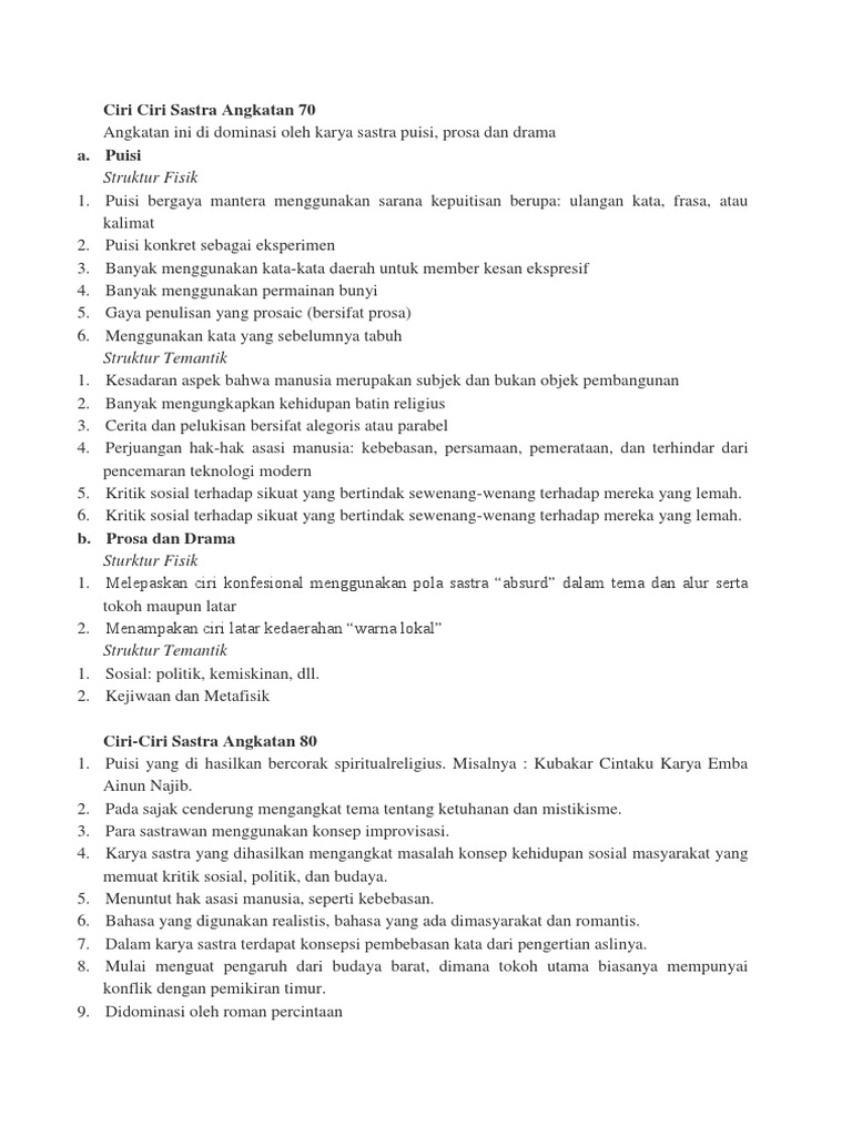 Ciri Ciri Sastra Angkatan 70