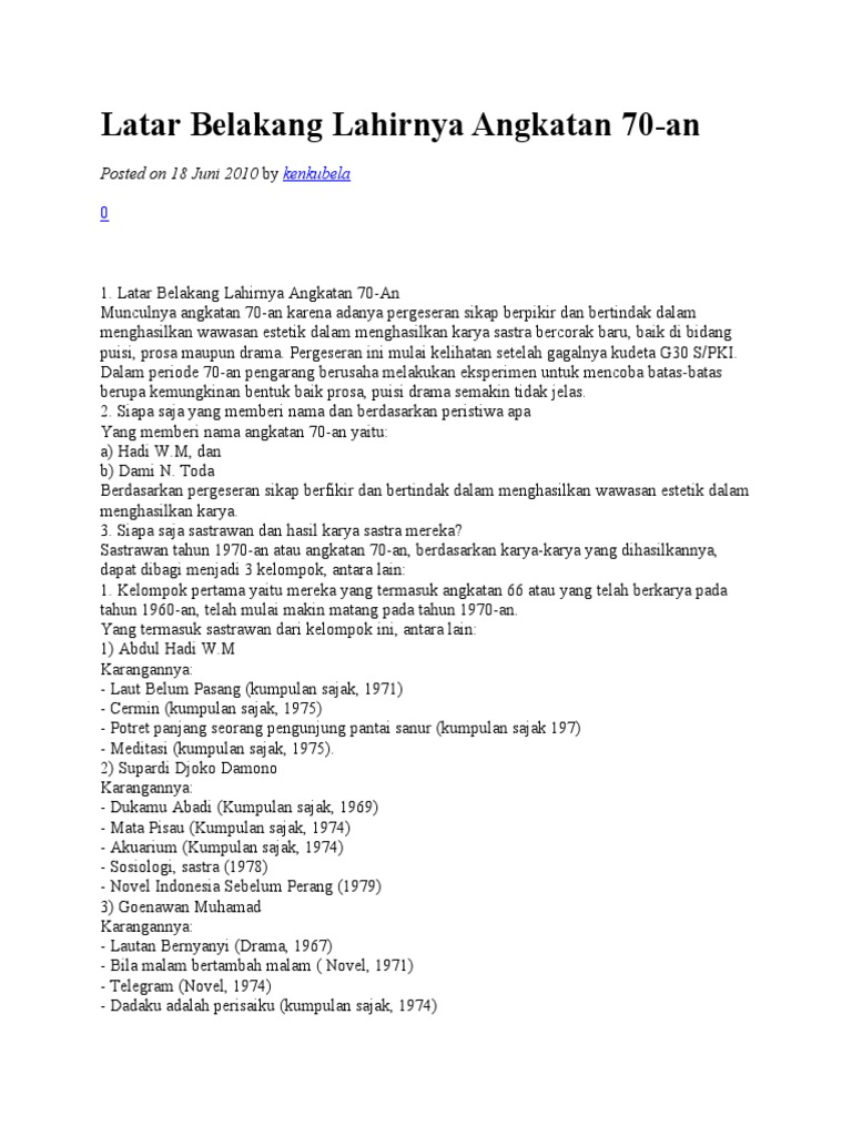 Latar Belakang Lahirnya Angkatan 70-An