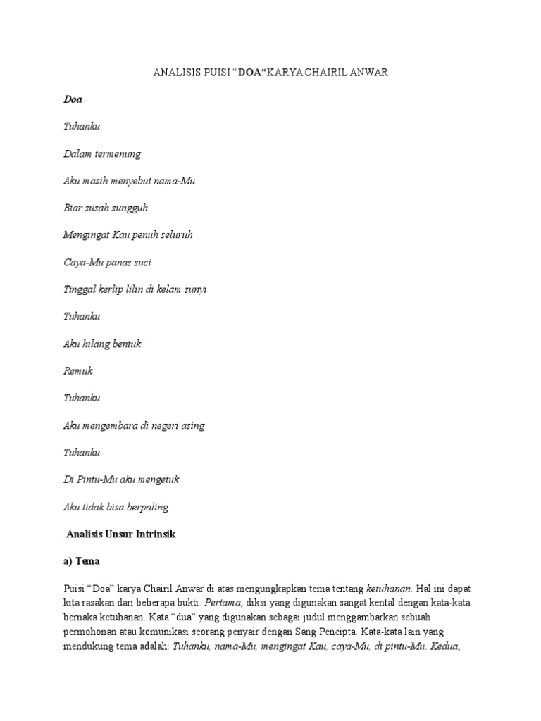 tentukan tema beserta alasanya, makna dari puisi doa - Brainly.co.id