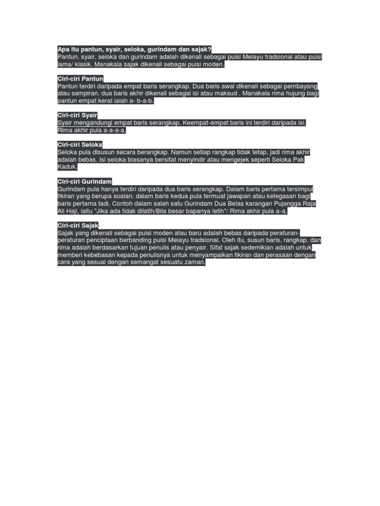 DOC) Sejarah pertumbuhan dan perkembangan Sajak | Nur Syakirah - Academia.edu