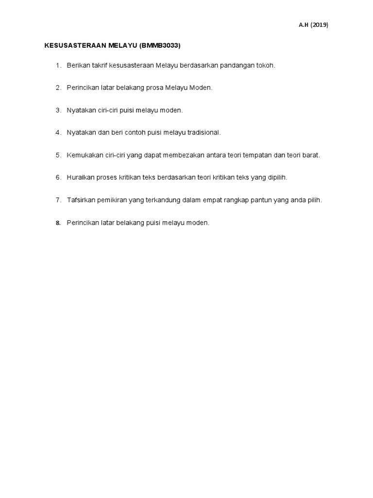 Kesusasteraan Melayu (Bmmb3033)