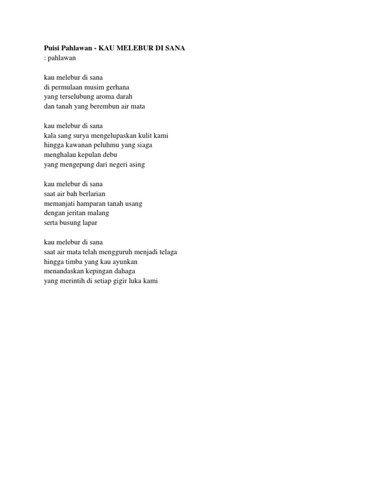 Contoh puisi bertema pahlawan beserta majasnya. Tolong bantu ya kak buat pr bsk:(( - Brainly.co.id