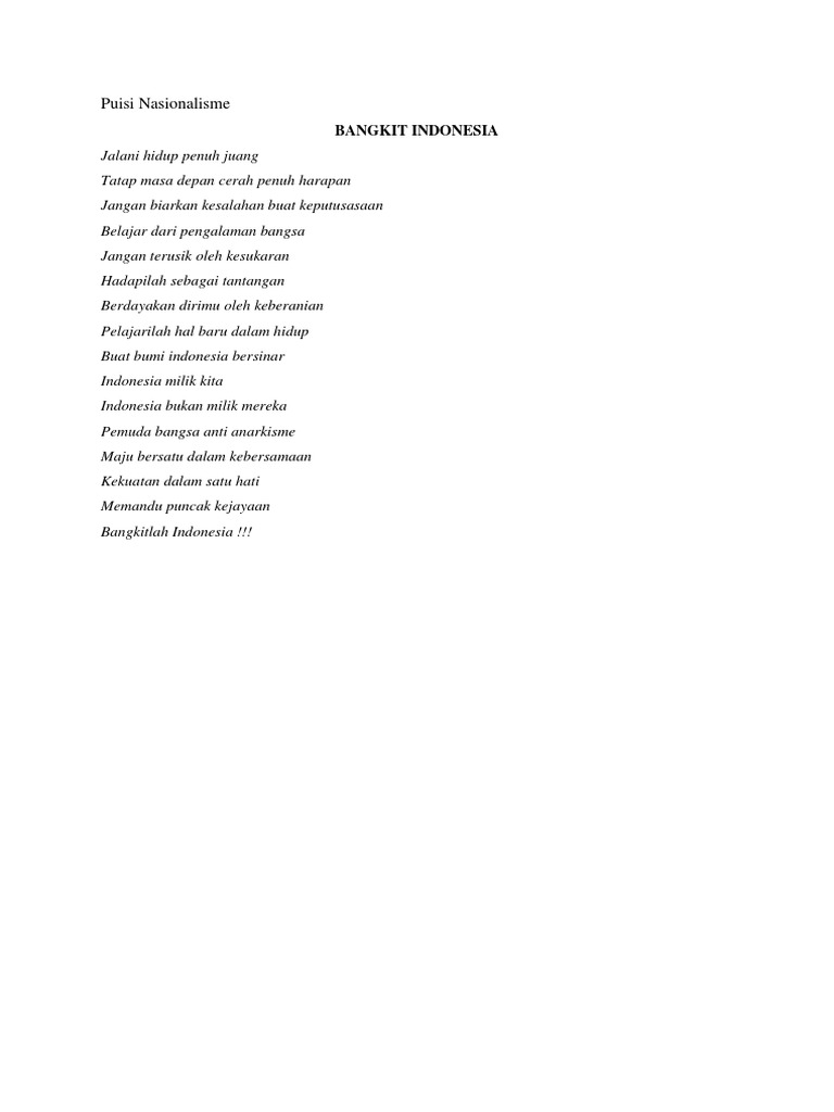 puisi dengan tema nasionalisme 8 bait - Brainly.co.id