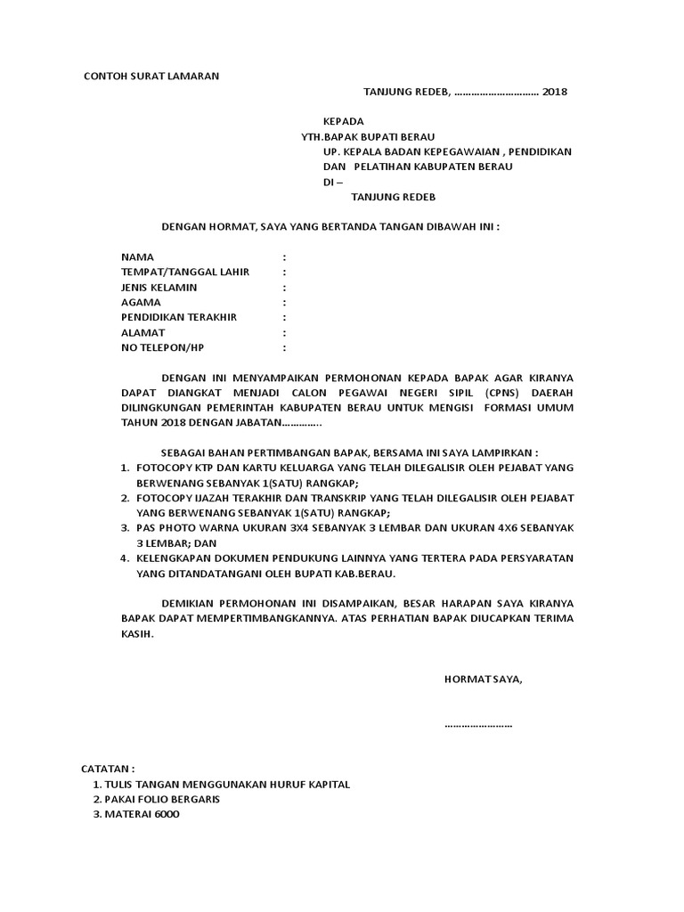 PDF) Contoh surat lamaran CPNS Kab. PALI | hariee as - Academia.edu