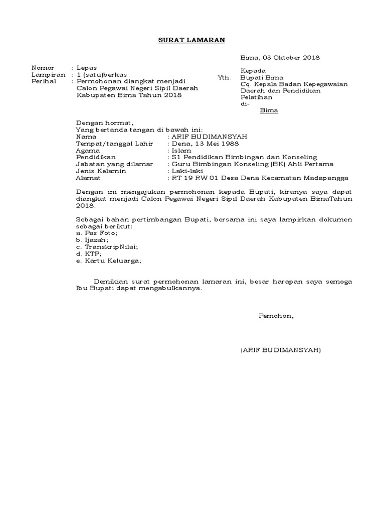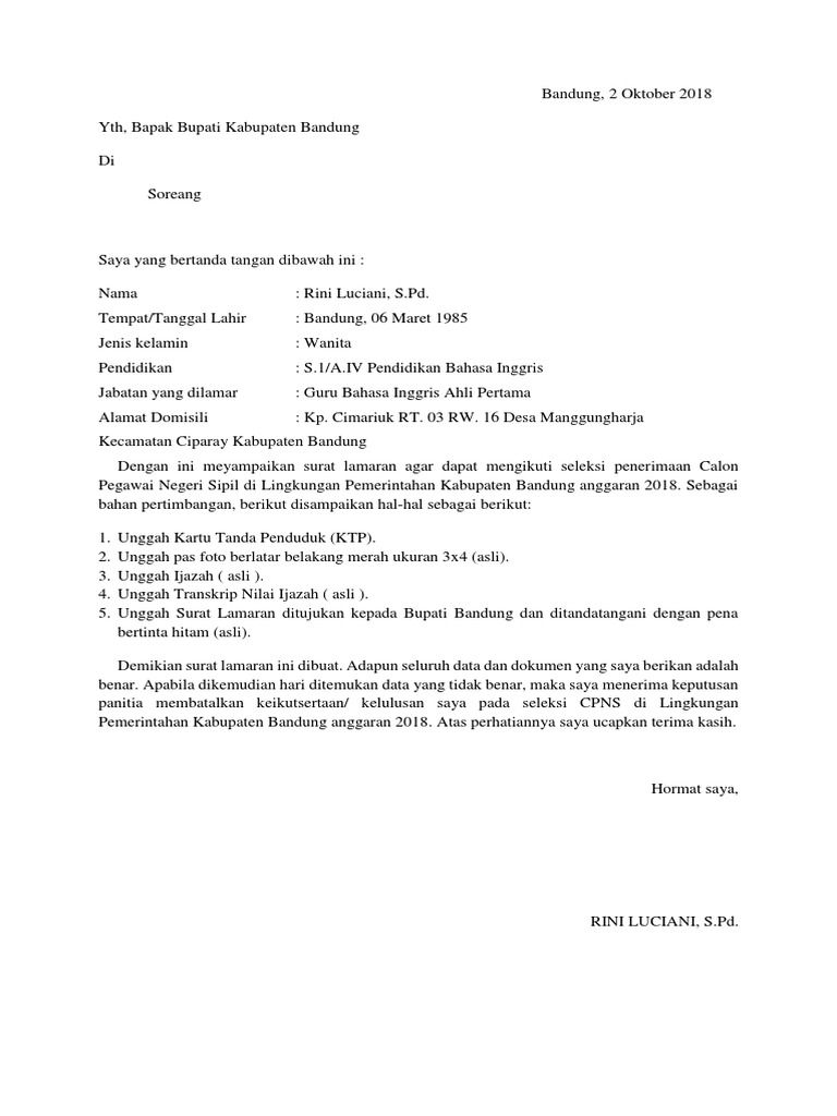 Contoh Surat Lamaran CPNS 2018 Kabupaten Kota - Info CPNS 2020