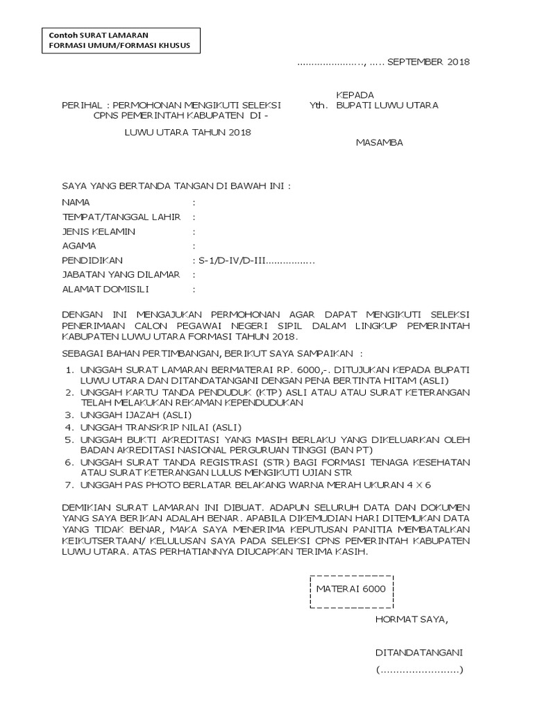 Cpns 2018 Format Surat Lamaran Tenaga Guru