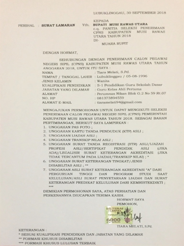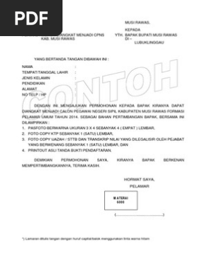 Contoh Surat Lamaran Peserta CPNS SUMSEL 2019, Tersedia Link Download PDF - Tribun Sumsel