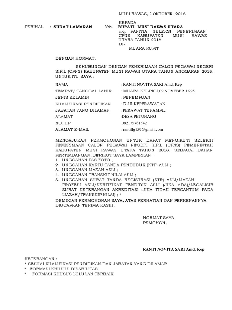 Contoh Surat Lamaran Kerja Sscn Bkn