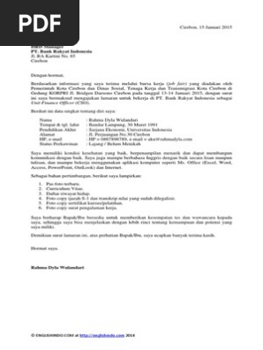 Contoh Surat Lamaran Kerja Di Bank Dalam Bahasa Indonesia