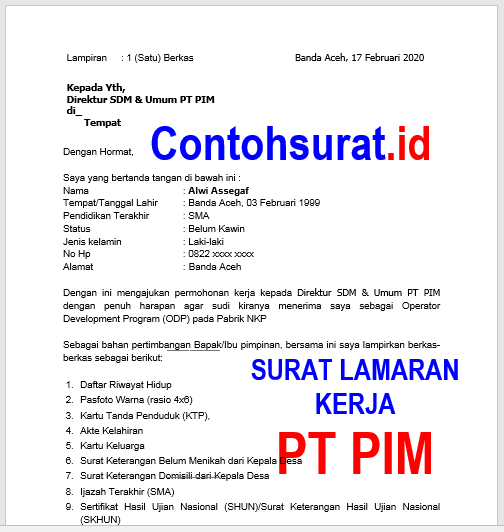 Surat Lamaran Kerja Cfc - PUSATRIK.COM