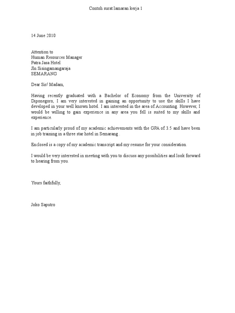 Surat Lamaran Kerja Hotel Bahasa Inggris | Surat, Inggris, Bahasa