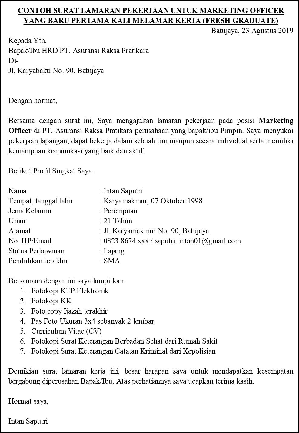 Terlengkap - Contoh Surat Lamaran Kerja Marketing [2020 Update]