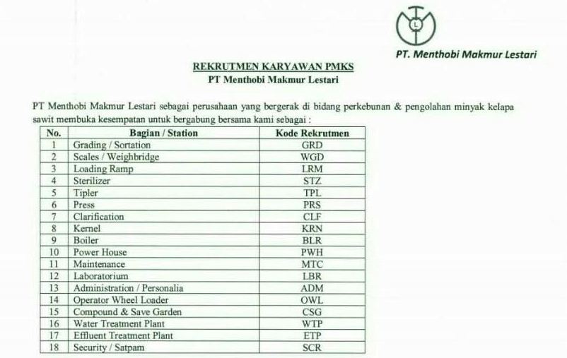 PENGUMUMAN LOWONGAN KERJA PERUSAHAAN… - Pusat Karir Perkebunan Stipap | Facebook