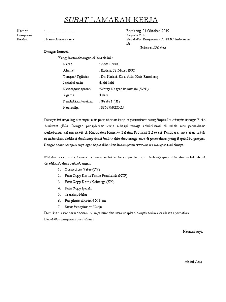 Contoh Surat Lamaran Kerja Di Pt Kelapa Sawit – Berbagai Contoh