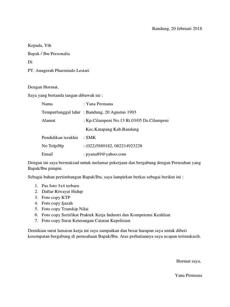 Contoh Surat Lamaran Kerja - Lowongan Kerja Kalimantan Tengah