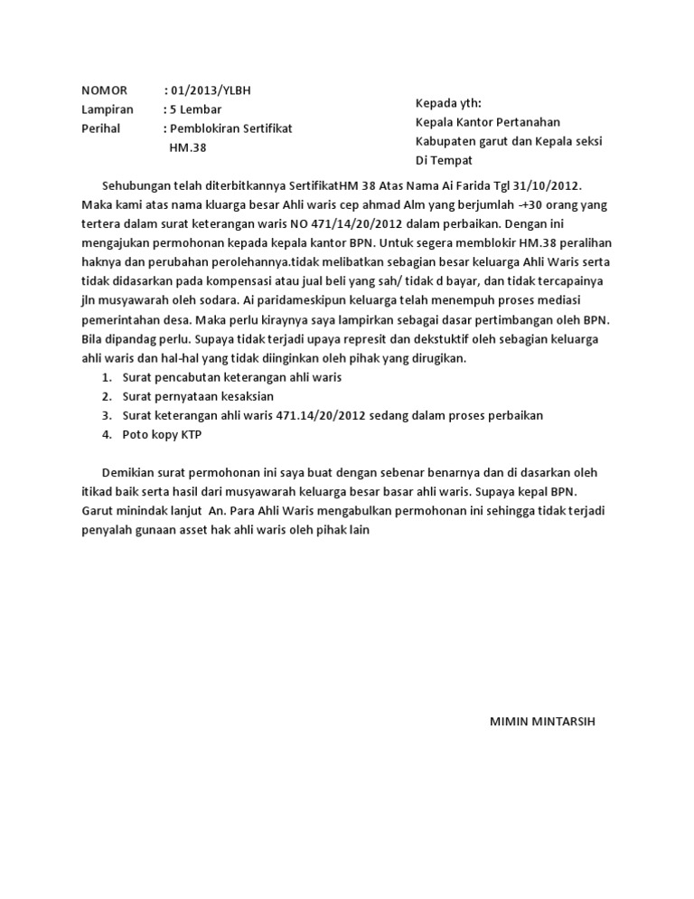 Contoh Surat Permohonan Ke Badan Pertanahan Nasional - Bagi Contoh Surat
